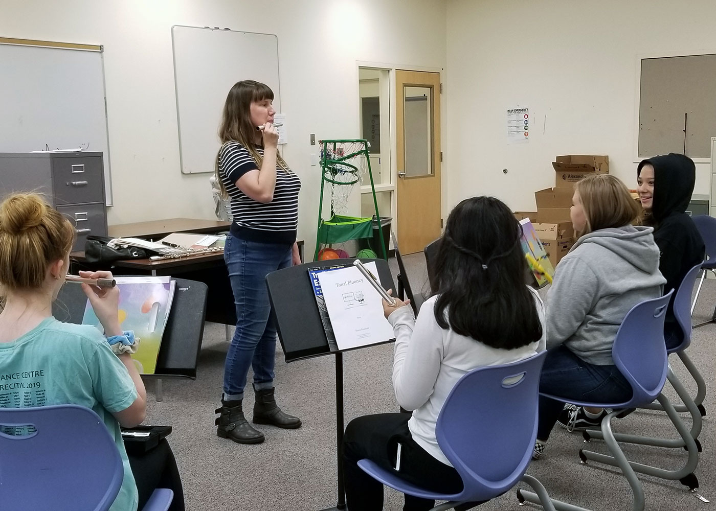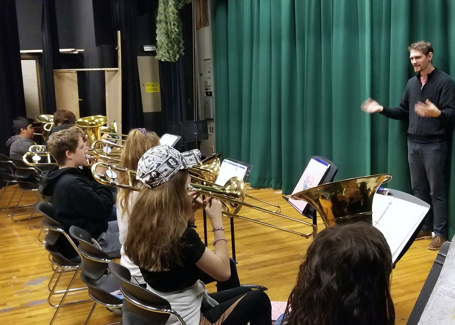 The project began in 2018 with sectional cohorts chosen by the participating band director, working on technique, musicianship, and practice strategies that band directors do not have time to address for each individual instrument section or even individual student.